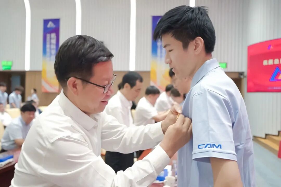 典禮上,王德成、李玉鑫及導(dǎo)師代表共同為新生佩戴總院徽章。這枚徽章不僅象征著中國(guó)機(jī)械總院人的身份,更承載著“以提升中國(guó)裝備制造水平為己任”的使命與榮光。優(yōu)秀導(dǎo)師獎(jiǎng)、最受歡迎教師獎(jiǎng)、新生入學(xué)獎(jiǎng)學(xué)金和優(yōu)秀課程獎(jiǎng)獲獎(jiǎng)代表上臺(tái)領(lǐng)獎(jiǎng)。新生代表手捧鮮花向?qū)焸儷I(xiàn)上誠(chéng)摯敬意與節(jié)日祝福,表達(dá)莘莘學(xué)子的感激之情。